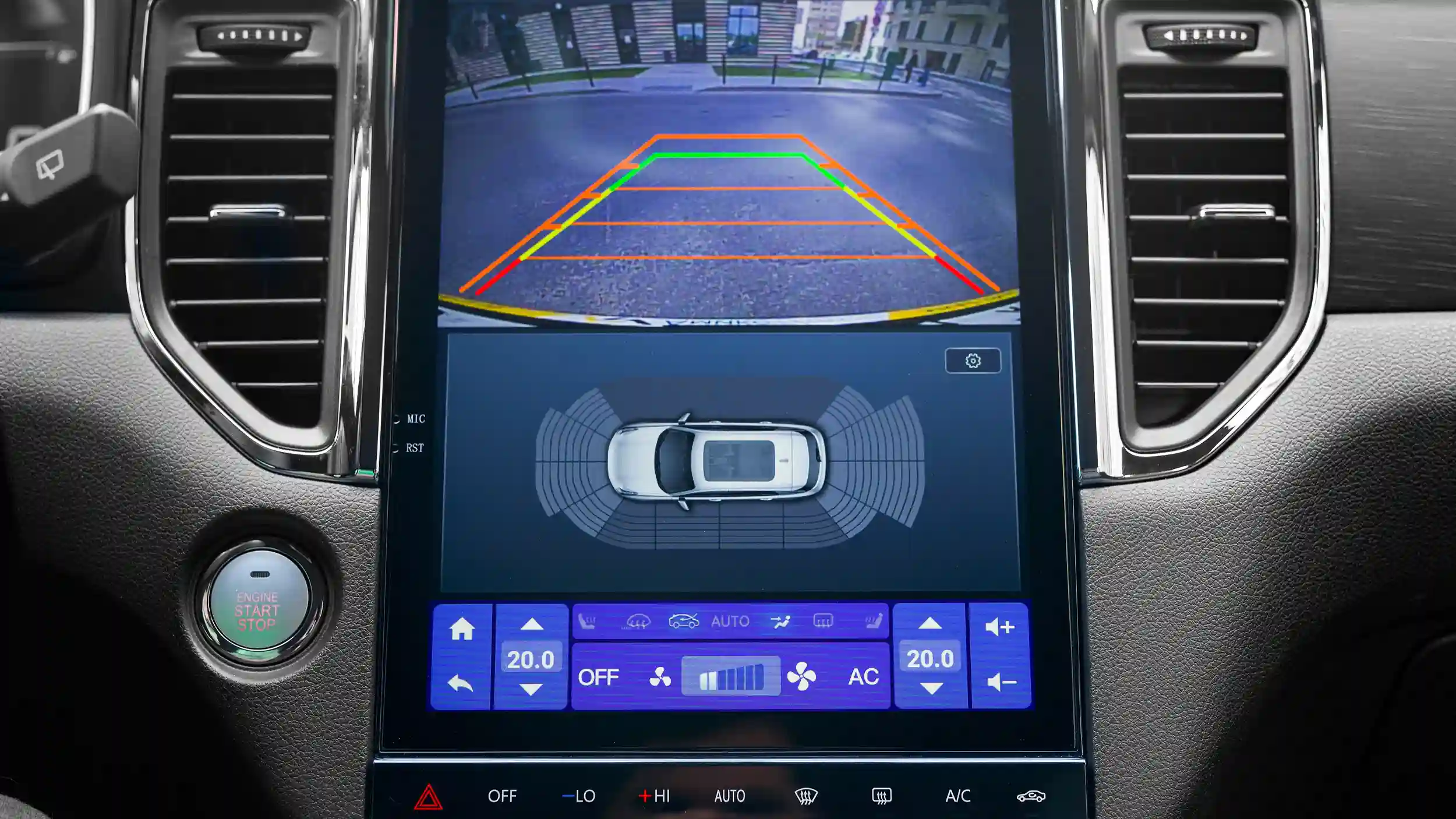• Камера заднего вида с динамическими линиями разметки